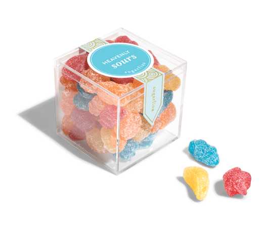 Heavenly Sours-Made with real fruit juice*, these sweet and tart gummies have a taste that's totally out of this world. One bite of these sweet & sour gummies will have you seeing stars... and suns, moons and clouds! Made with pectin, these gummies are gelatin-free—a perfect treat for vegans and vegetarians.