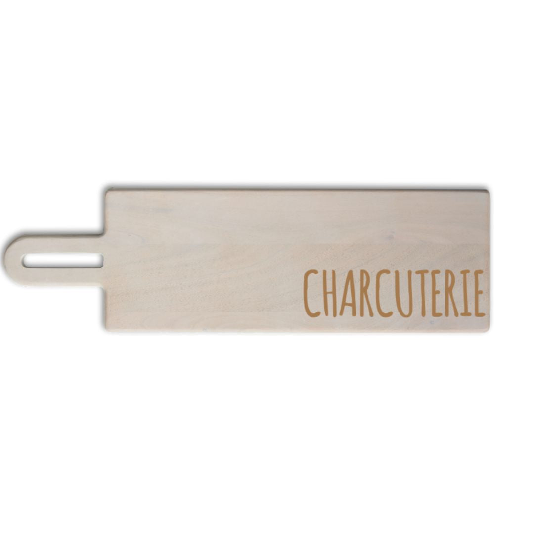 Stunning premium acacia wood with food-safe matte gray finish. When we engrave on these, the gorgeous natural acacia wood tone shines through for a beautiful and bold contrast.