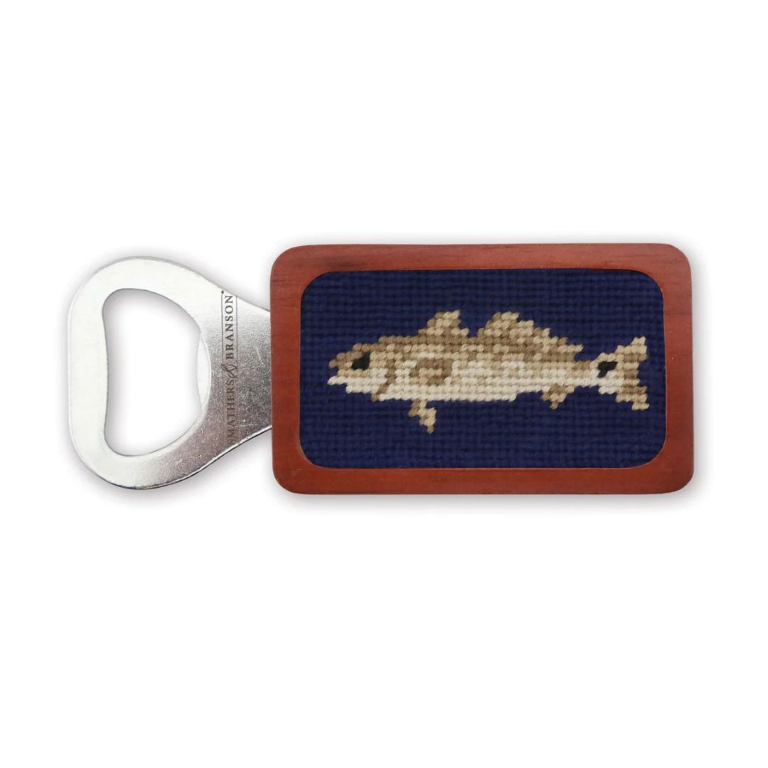 Stick it on the fridge or put it on top of your bar, these bottle openers are made of a chestnut colored wood handle that houses our signature needlepoint and hidden magnets.