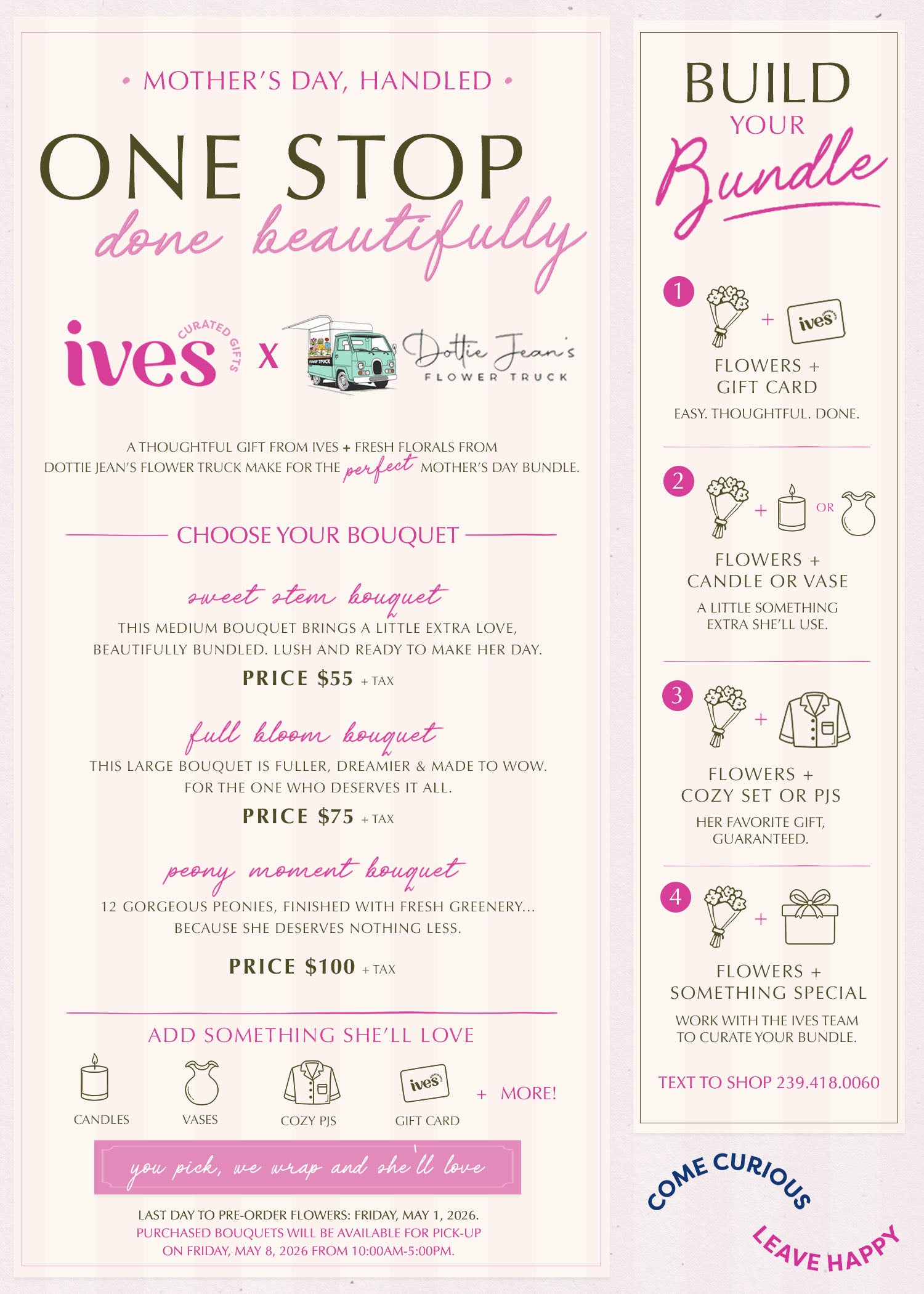 last day to pre-order flowers: Friday, May 1, 2026.