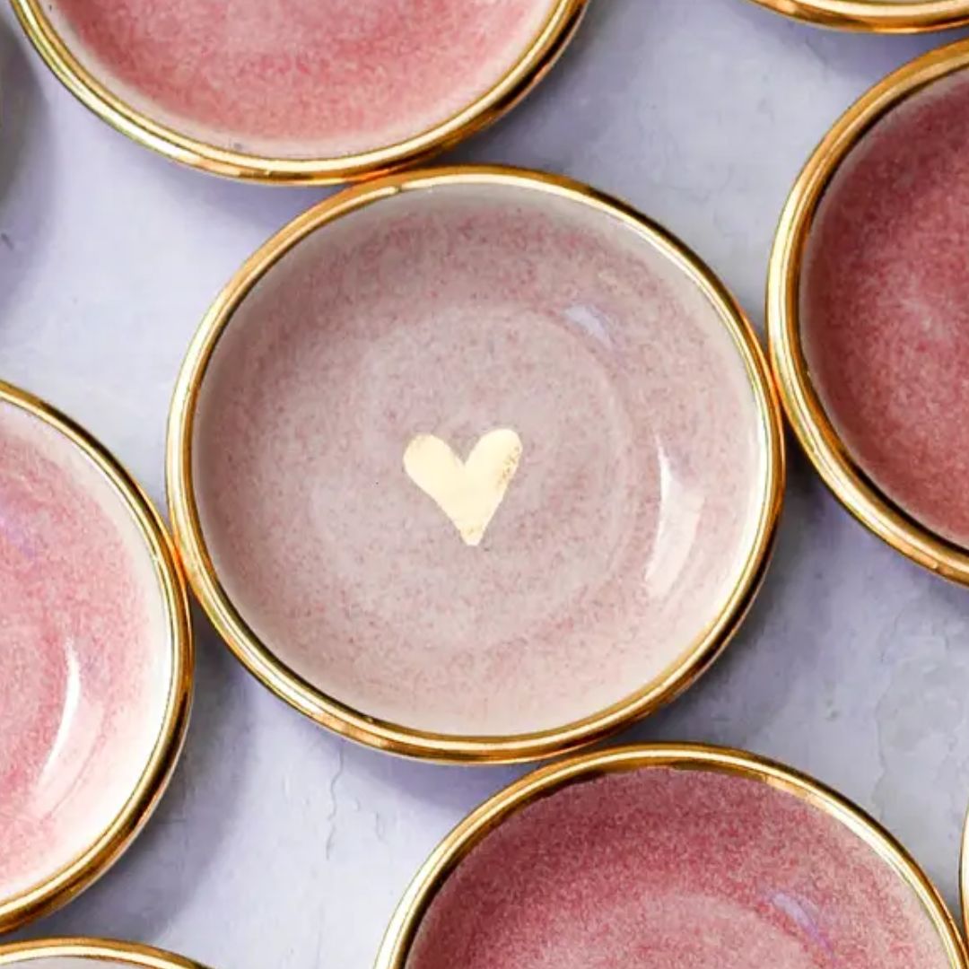 Discover the perfect spot for your treasures with this charming green butterfly porcelain trinket dish! Ideal as jewelry holders or small catch-alls, these clay dishes add a touch of elegance to any space. Trimmed with a hand-painted 22k gold edge, they make a stylish addition to your bathroom counter or bedside table. Each trinket dish is unique and feature a clear porcelain white glaze, highlighting a vintage botanical print of an emerald green butterfly. Due to their handmade nature, each dish is approximately 3" wide.
