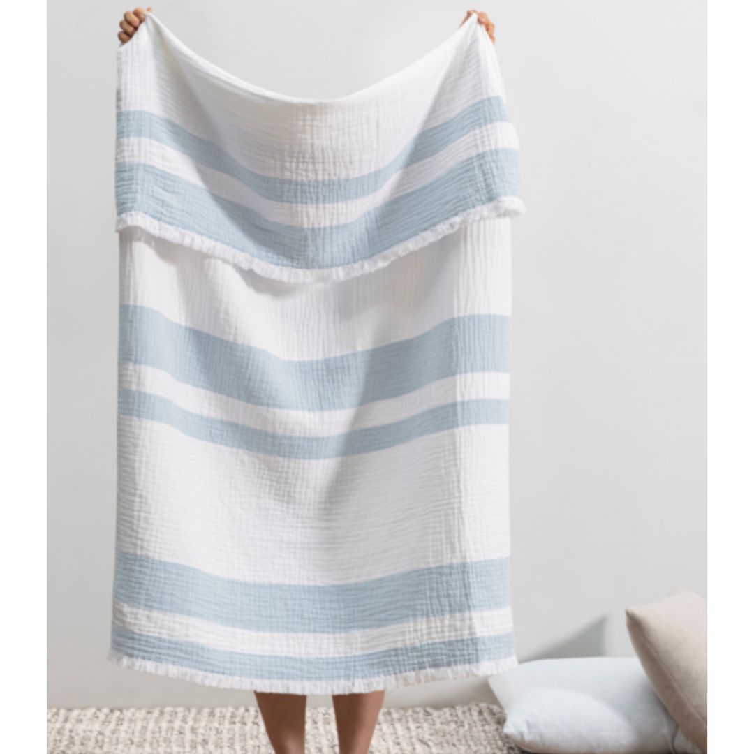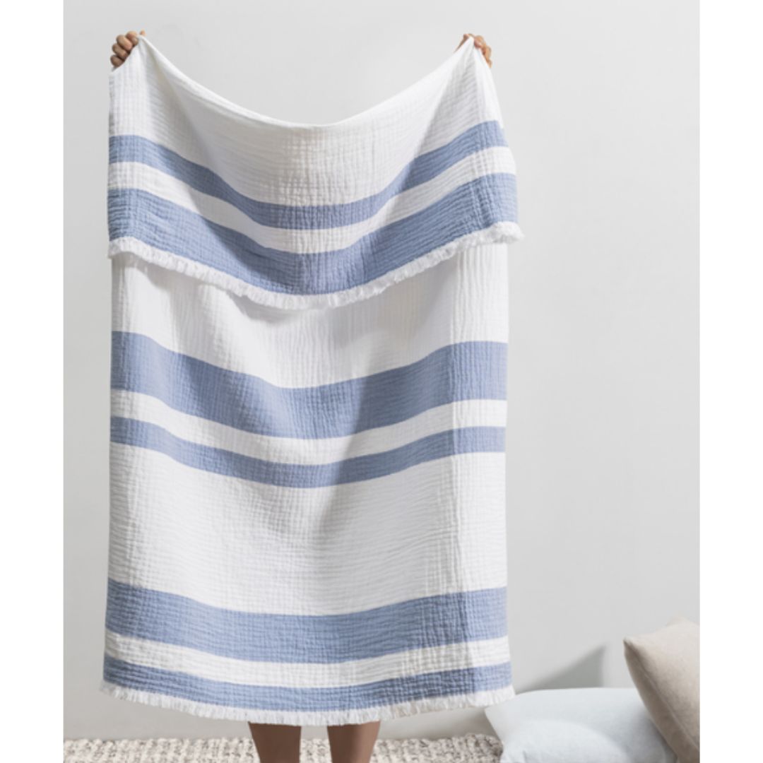 The San Marino Throw is made in Portugal from 100% Cotton. This throw is plush, soft, and perfect for keeping you warm on cool summer evenings. Prepare to fall in love with this versatile piece – great for beach outings, snuggling by the fire pit, or adding a touch of style to your sofa and bed. Plus, it's conveniently machine washable and dryable!