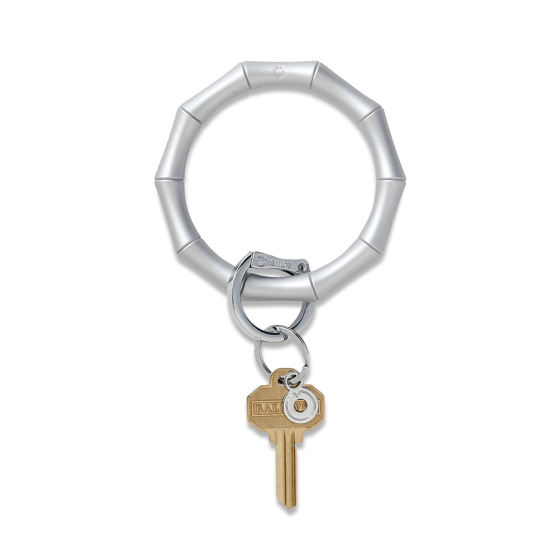 Inspired by Hollywood Regency style, Bamboo is our most glam Silicone Big O® Key Ring yet! The Original Big O® Key Ring is a one-size-fits-all bracelet key ring that can be worn on your forearm or above your elbow for hands-free ease. The patented, signature locking clasp clicks open and closed so you can contain your house keys, car keys, card case and more in one central, secure location. Sculpted from the same durable, waterproof silicone you know and love, the Bamboo Big O is a little pop of luxury on your wrist.