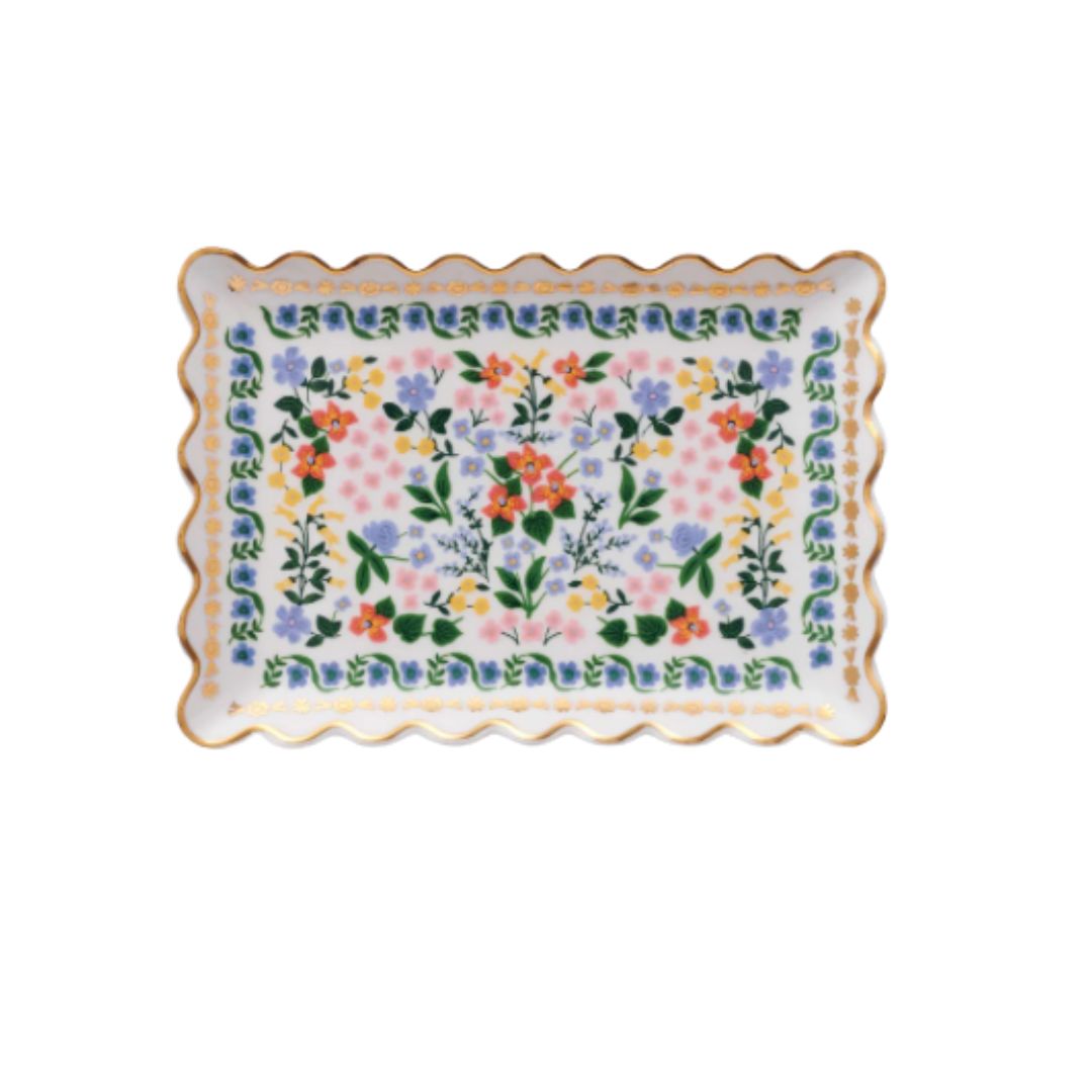 Keep track of all your trinkets with our catchall tray, perfectly sized for keys or jewelry. This porcelain dish features our Strawberry Fields floral and has a metallic gold rim for extra shine.