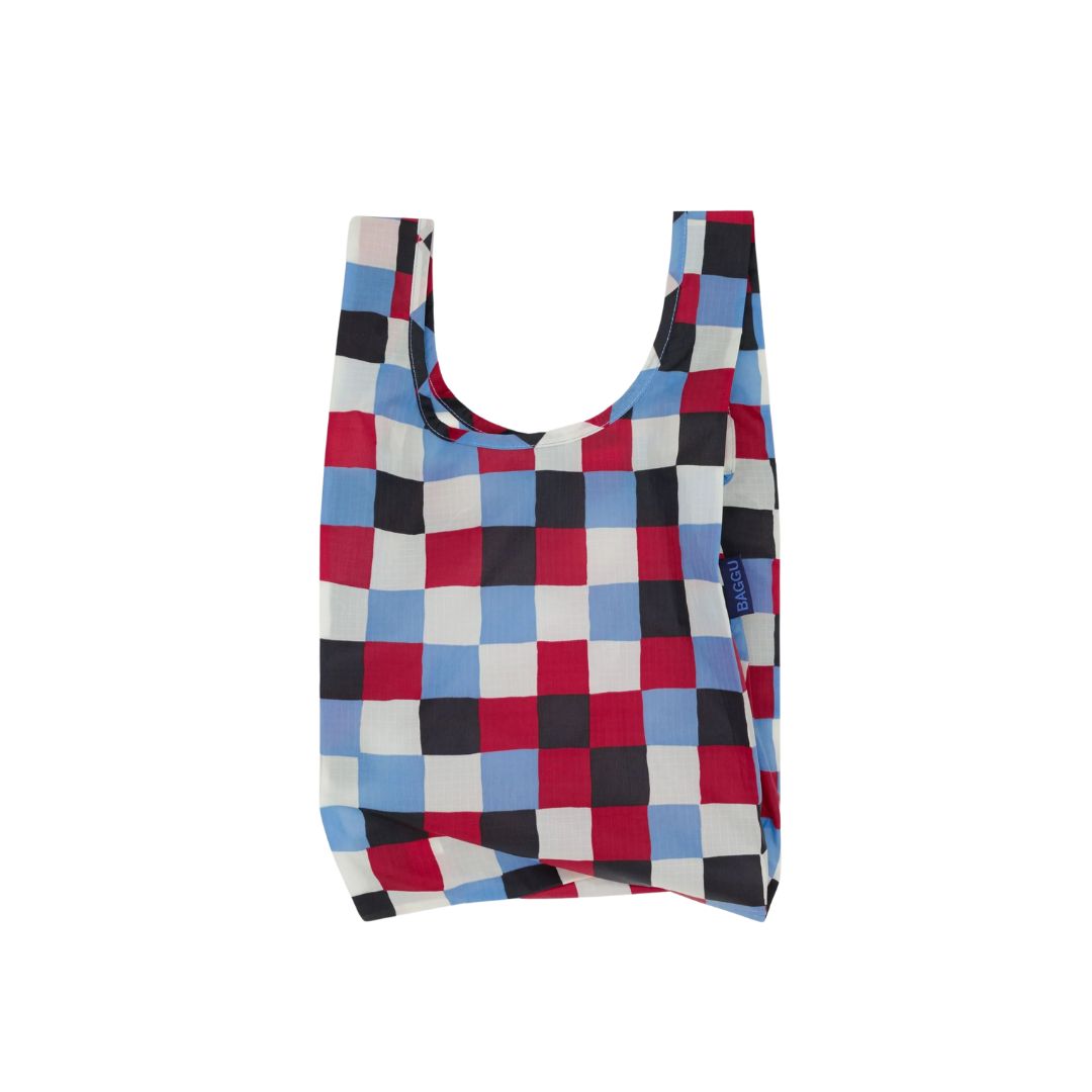 Our best selling reusable bag is not just for the grocery store, it goes everywhere and hauls (practically) anything. Carry in your hand or over your shoulder. Holds 2–3 plastic grocery bags worth of stuff. Folds into a flat 5" × 5" pouch. Holds 50 lbs. Now made from 40% recycled nylon sourced from pre-consumer waste.