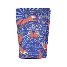 8Roasted Salted: It’s hard to beat a golden, gorgeous, lightly salted pecan. Our classic variety adds just a touch of salt to accentuate the rich nuttiness of our Georgia grown pecans. So good, you can eat them by the handful.